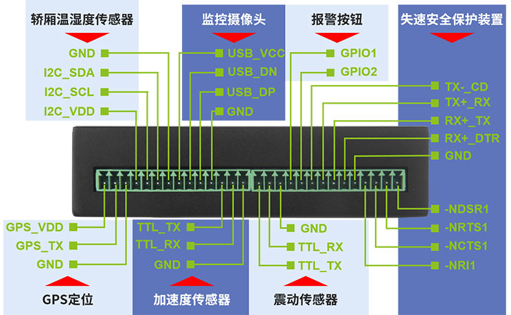 在整套電梯物聯網管理方案中,將GPS定位傳感器、轎廂溫度傳感器、加速度傳感器、報警裝置接入杰和R100;利用R100的邊緣計算能力,對采集到的數據進行運算和整形,迅速識別并響應異常運行狀態;最終通過無限局域網絡或蜂窩數據網絡上發至管理平臺,完成電梯的物聯網接入。