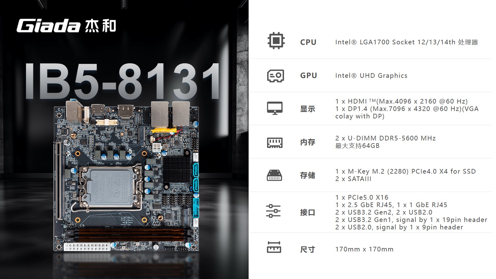 為精準(zhǔn)適配客戶及多樣化的市場需求,杰和科技重磅推出了具備高性能計(jì)算能力與靈動(dòng)擴(kuò)展性等特點(diǎn)的主板 IB5-8131。