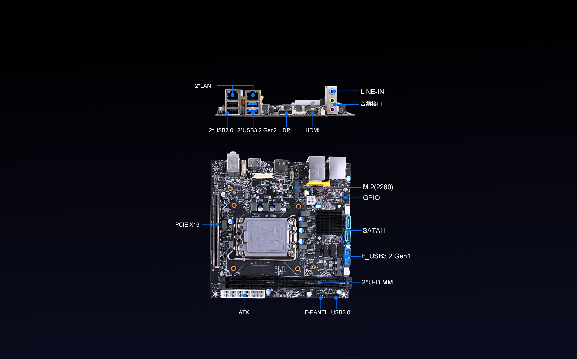 IB5-8131采用LGA1700插槽,采用Intel® B760 芯片組,支持Intel第12代至14代處理器,兼容Alder Lake-S、Raptor Lake-S和Raptor Lake Refresh 處理器,采用6+1相供電,即使在長時(shí)間高負(fù)載工作時(shí)也能維持穩(wěn)定運(yùn)行,配備2 x U-DIMM DDR5內(nèi)存,最大支持96GB,頻率最高可達(dá)5600MHz,可靈活擴(kuò)展NVMe SSD和2個(gè)SATA3.0存儲(chǔ)。