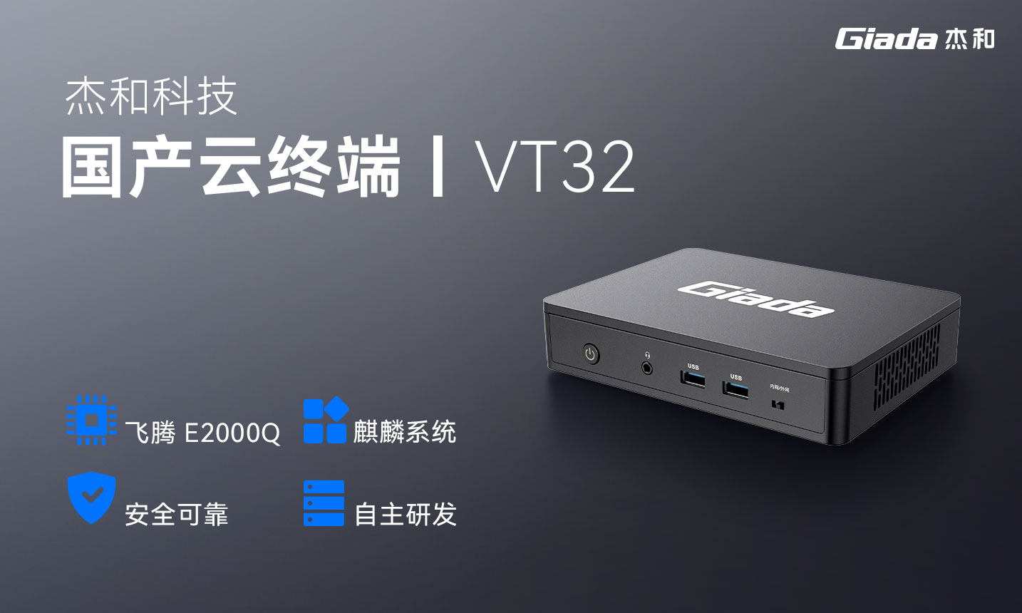 杰和科技推出的云終端VT32,以飛騰騰瓏E2000Q處理器+銀河麒麟系統(tǒng)為核心,為政府、金融、能源、醫(yī)療等關(guān)鍵行業(yè)提供安全、高效、易管理的國產(chǎn)化桌面云終端方案,助力構(gòu)建自主可控的IT基礎(chǔ)設(shè)施。