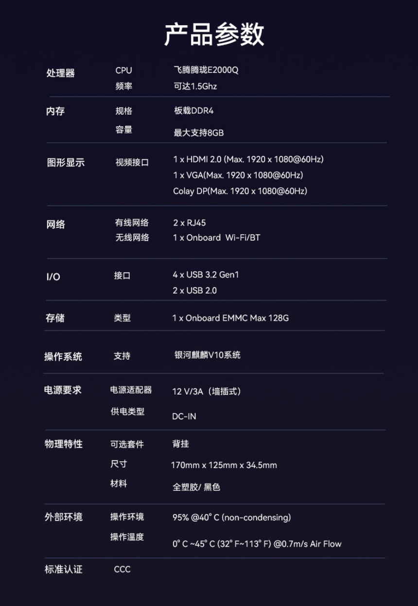 杰和科技云終端VT32搭載了飛騰騰瓏E2000Q處理器和其他國產(chǎn)組件,E2000Q集成2個FTC664和2個FTC310處理器核,主頻達(dá)1.5GHz,功耗最大僅11W;