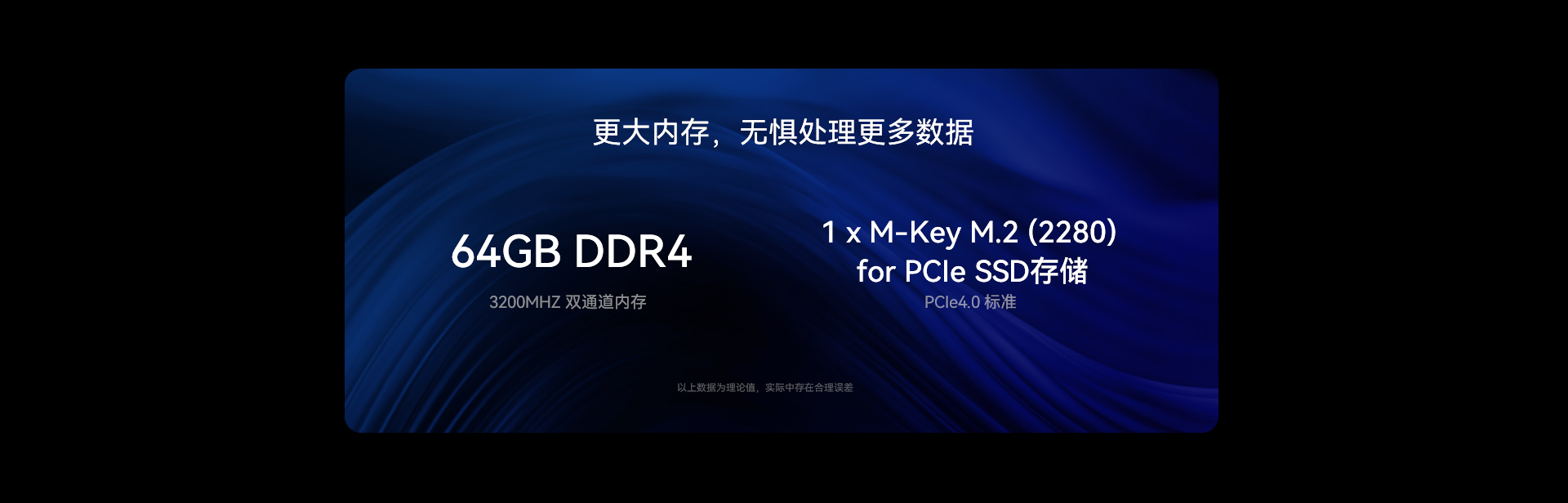采用雙通道DDR4內存設計,最大可擴展至64GB