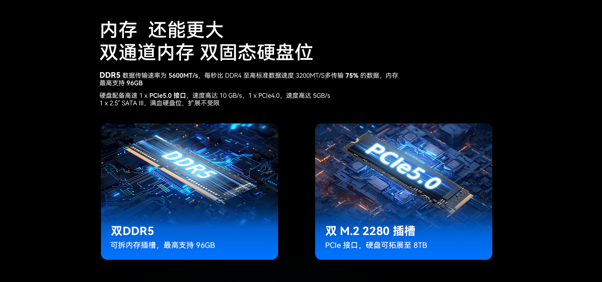 | 插槽 | 2 x SO-DIMM 5600Mhz | |