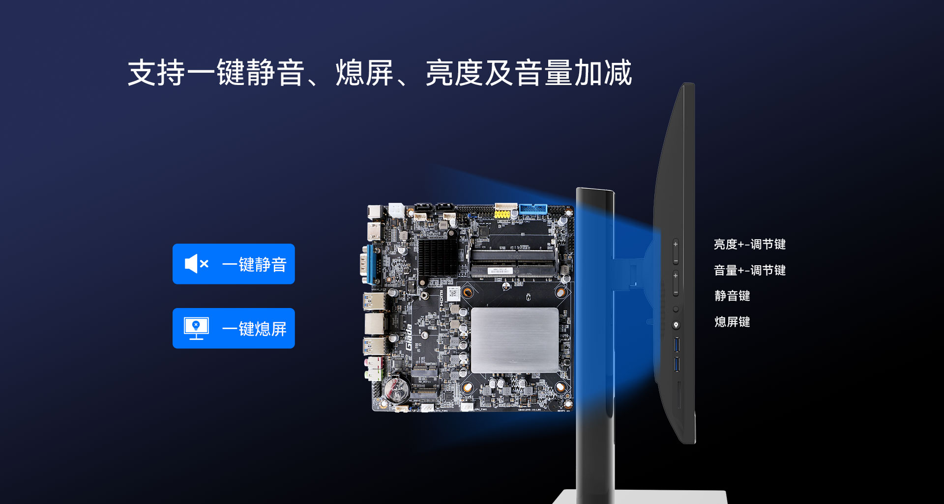 支持硬件一鍵靜音,一鍵熄屏,音量加減,亮度加減